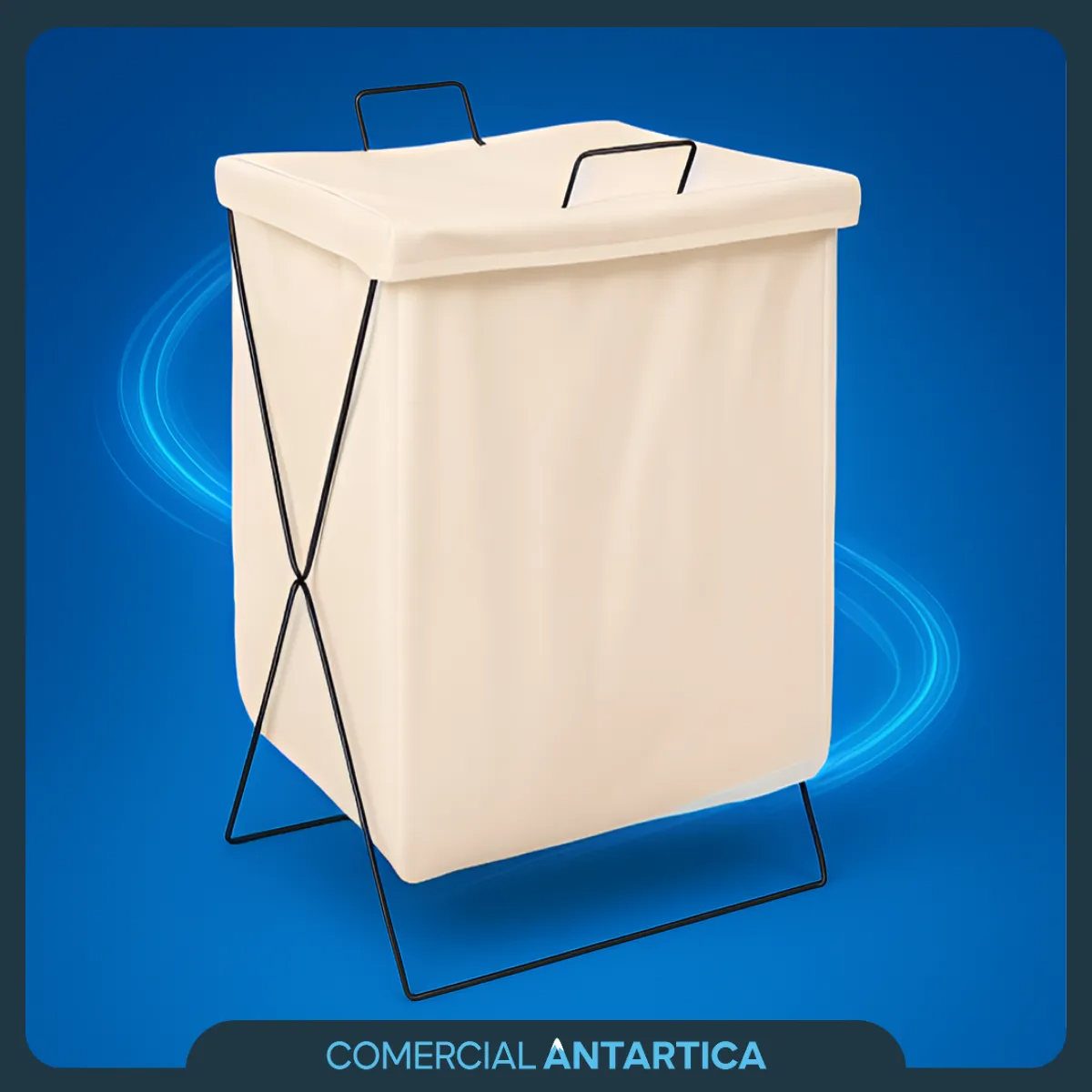 1 cesto plegable con tapa de tela y estructura metálica.