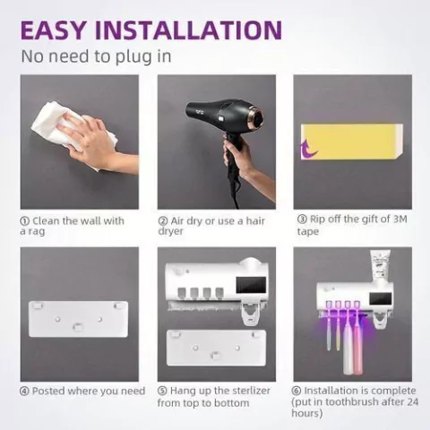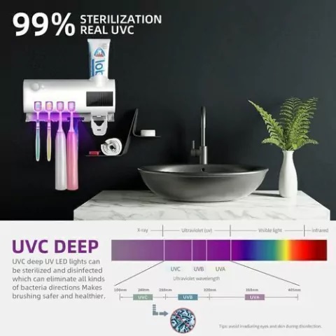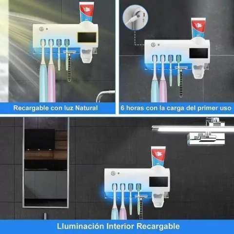 Transformá tu rutina diaria con el dispensador inteligente de pasta dental con esterilizador UV, el accesorio ideal para mantener tus cepillos siempre limpios, organizados y libres de bacterias.